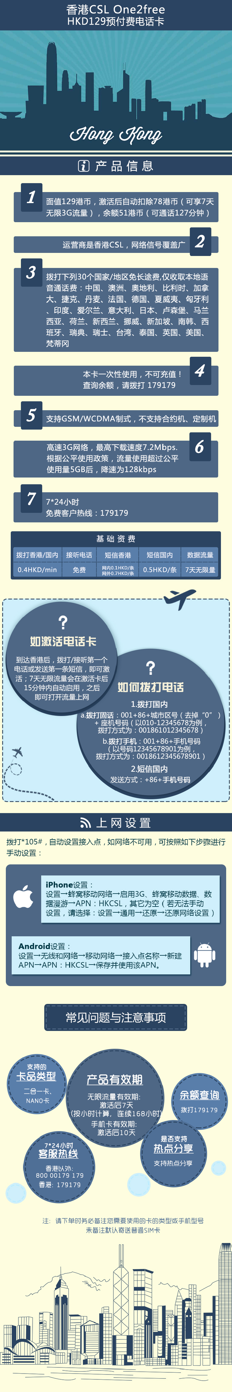 1.面值129港币,激活后自动扣除78港币(可享7天无限流量),余额51港币(可通话香港或国内共127分钟);
