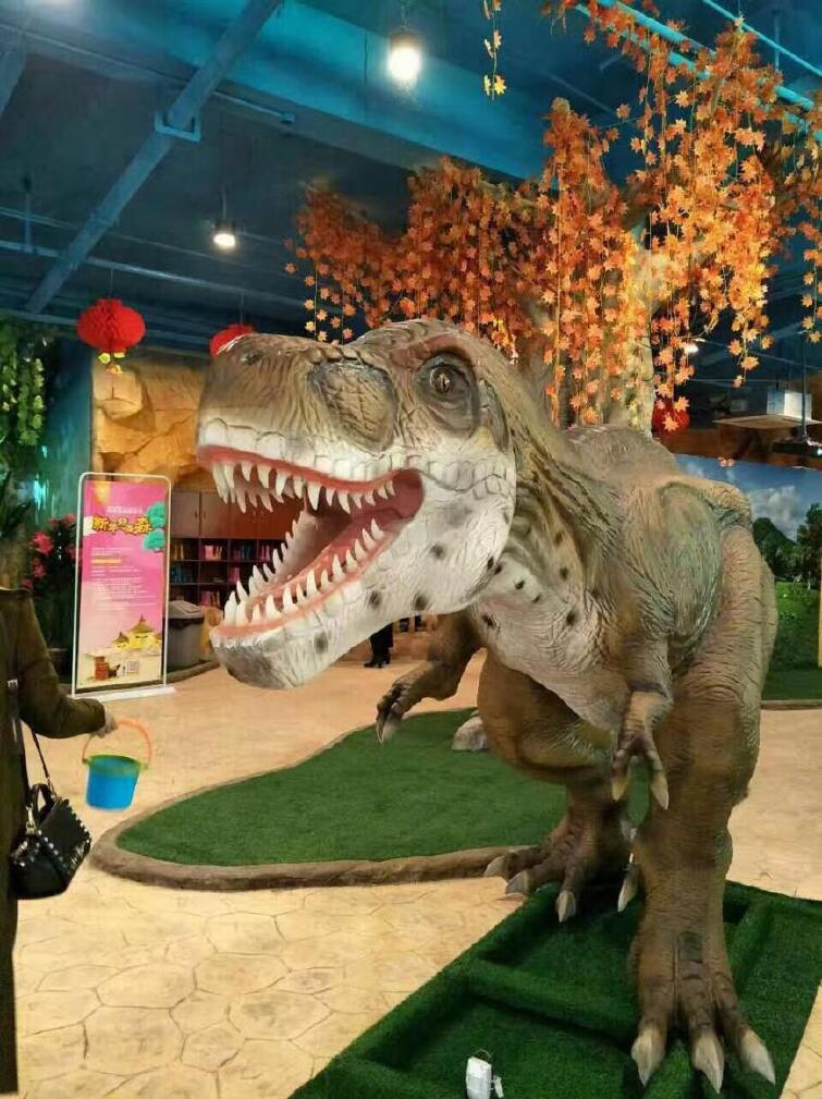 “恐龙复活啦?”会摇头摆尾、扭动身体,还会发出吼叫,敢不敢摸它,就看你胆量了。