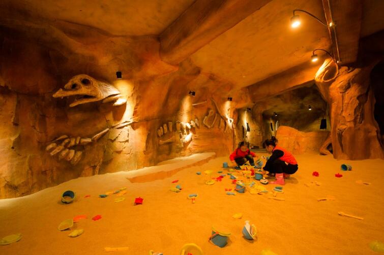 海沙里埋藏了许多宝藏,等待着你的挖掘,墙壁上裸露的恐龙化石,带你近距离走进它们生活的时代。