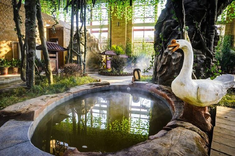 酒店温泉区以天然地热资源打造,设70多个别具特色的室内外温泉泡池,静心休憩,尽享人生之大美,容古典传统,创天成之势。泉水的灵动波光与白鹭鸟的优雅身影,交叠出丰富浪漫的温泉文化与自然韵味。这里是大自然所赋予的寻求自然回归与内在平静的绝美处所,在这里您可以弃闹市之尘埃,而取天地之烟霞。