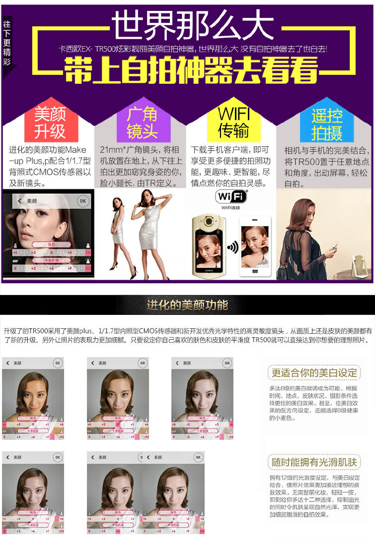 卡西欧TR500(白色)自拍神器租赁<设备押金单拍>
