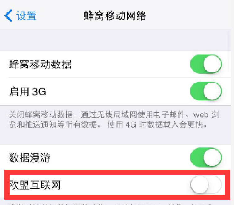3、苹果手机请关闭【欧盟互联网】