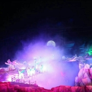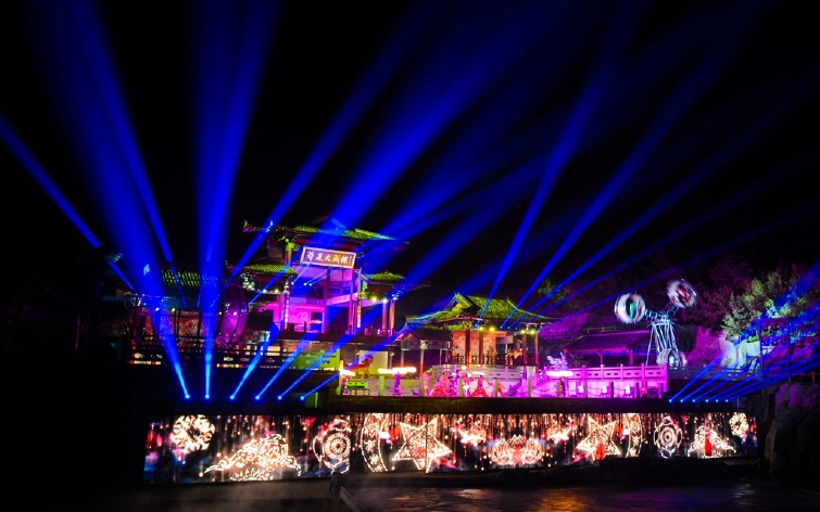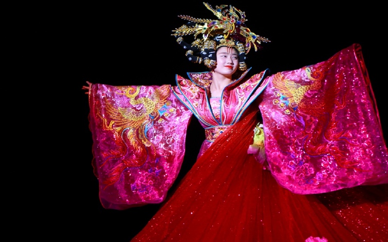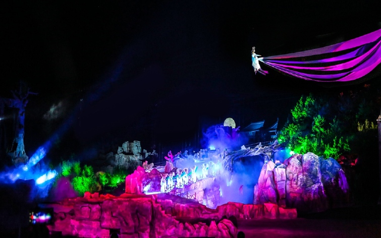 性感的波斯少女,跳着肚皮舞,带给观众一场精彩纷呈的表演。看台伴随着美女一路跑到大戏楼,飞车、大转轮、彩舞,粉墨登场,好戏连台,这一幕是华夏传奇中的嘉年华。