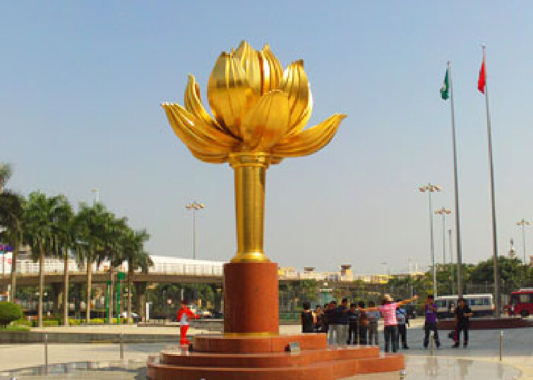 1999年12月20日,澳门回归祖国的第一天,由中国国务院赠送的大型铸铜贴金雕塑“盛世莲花”于综艺馆前金莲花广场揭幕。盛世莲花”主体部分由花茎、花瓣和花蕊组成,共16个造型,采用青铜铸造,表面贴金,重6.5吨;基座部份由23块红色花岗岩相叠组成。雕塑总高6米,花体部份最大直径为3.6米。