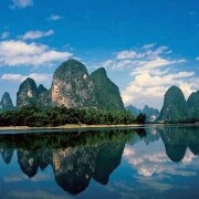 地图“桂林山水甲天下,阳朔堪称甲桂林”,桂林漓江景区是国家5A级景区,是世界上风景最美,规模最大的岩溶山水游览区之一。漓江隶属于珠江水系,发源于桂林市兴安县的猫儿山山脉,全长437公里。精华的景色是在杨堤乡至兴坪镇约20公里的水程。坐竹筏游览沿江,风光旖旎,碧水萦回,青山倒影,20元人民币背景图就在此。多么绚丽多彩的画卷,奇美的景色,让古今中外无数的文人墨客赞叹,唐代大诗人韩愈曾作“江作青罗带,山如碧玉簪”的诗句来赞美漓江。