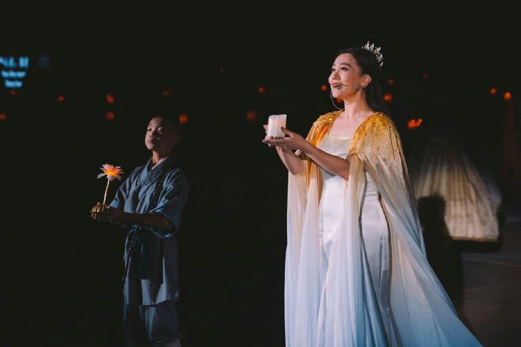 演出讲述大报恩寺的小沙弥,在大报恩寺塔上风铃的带领下,穿梭明朝、唐朝、古印度,与明成祖朱棣、玄奘法师、世尊释迦牟尼一同探索灯火的意义,共同寻找照亮心灵道路的明灯。主题曲《心灯》是由中国著名歌唱家,国家一级演员谭晶献唱。