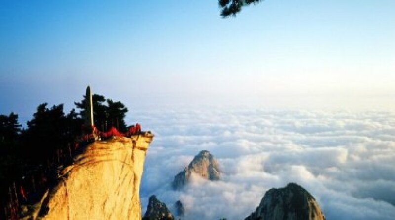 华山留下了无数名人的足迹,也留下了无数故事和古迹。自隋唐以来,李白、杜甫等文人墨客咏华山的诗歌、碑记和游记不下千余篇,摩岩石刻多达上千处。自汉杨宝、杨震到明清冯从吾、顾炎武等不少学者,曾隐居华山诸峪,开馆授徒,一时蔚为大观。华山是道教胜地,为道教“第四洞天”,有陈抟、郝大通、贺元希最为著名的道教高人。山上现存七十二个半悬空洞,道观20余 座,其中玉泉院、东道院、镇岳宫被列为全国重点道教宫观。在华山你会看到武侠版的日出在华山,你看到的太阳不是如海平面上一跃而出,更不是像在其他山峰那样冉冉升起。在华山这个武侠名山面前,太阳竟是以一种近乎胆怯的动作,偷窥一般缓缓探出一线,然后又把自己笼进云层后躲藏起来,当人们千呼万唤许久,这才伸出头来,此时,华山东峰的仙掌倚天壁立,早已在旁守候 多时了。巨掌闪着寒光,仿佛要立时将这个偷懒的家伙从中挥为两截。华山之颠连日出的造型都敢创意,还有什么不可能的。