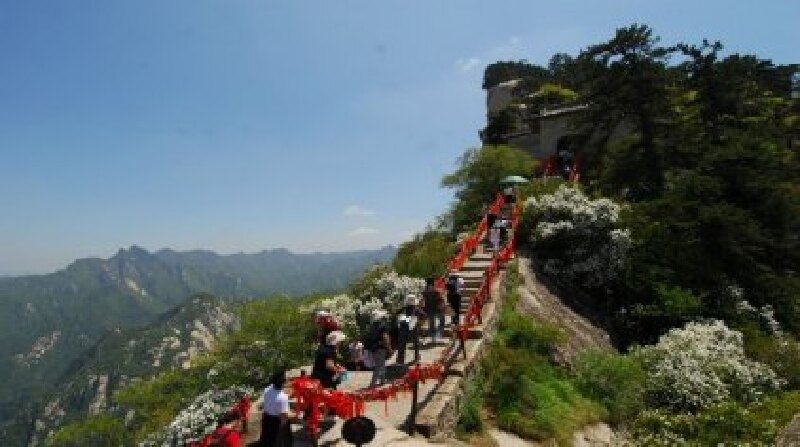 这是一个能从背后看自己的地方,这里有着和天空接的最近的感觉,有细微到一节台阶的兴奋,有每走一步回头望望自己的以前,就拥有了“一览众山小”的境界。还有那些走在你前面的人“更上一层”时的坚定、犹豫、勇敢、胆怯,转过身,那就是你的背影!你会发现自己的感情竟然可以这么丰富即使是最矜持的背包客,在华山险道上跋涉你也会纵情放歌。到了那个地点,到了那个时刻,就像是武侠小说中描写的“真气”在体内游 走、集聚、迸发一样,完全是自然而然的。如此的感动汇集在一起就叫“忘我”。“岳灵珊、令狐冲,我们来了”这样的叫喊声我相信你会说出来的。你会觉得看见了真实的人那些穿行于山路上的挑夫是华山上除了自然之外你最容易感动的原因。你的感动因为人。因为那些肩挑背扛着近百 斤货物上下华山的人,因为那些他们日复一日行走山路上长年踏出的石窝;因为他们努力紧绷的强有力的小腿,因为他们裸露着的古铜色的结实的臂膀;因为他们一路挑山时高亢的山歌,因为他们下山时在你身旁风一般的擦过;这就是挑起华山的人!华山虽不是很高的山,只有12.5 公里的山路,9567 级台阶,可就是因为历经了千尺幢、百尺峡、老君犁沟往上爬的步步艰辛,上天梯、登云梯的不易,下棋亭、鹞子翻身、长空栈道的九死一生,才能步道边的“劳极 乐极”前感受到痛彻筋骨,愉悦身心的酣畅淋漓。