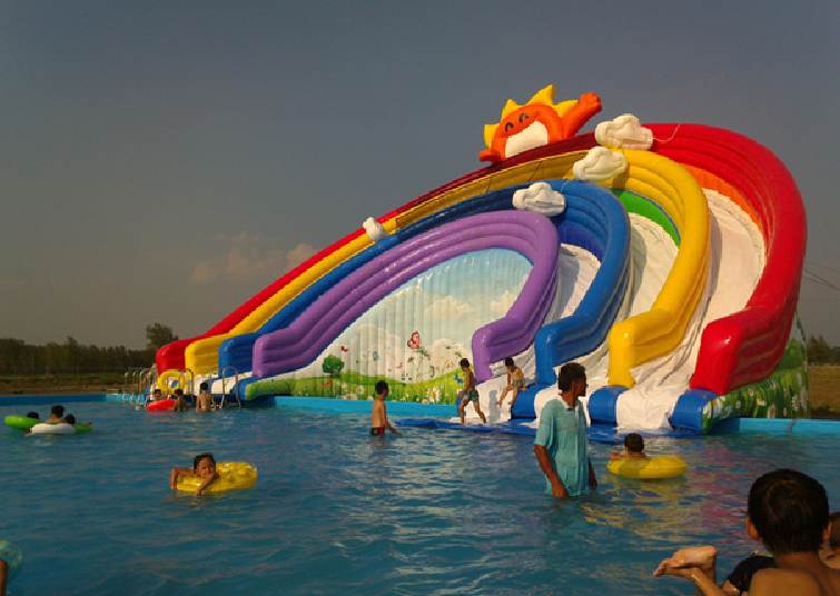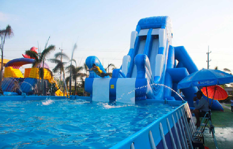 娱乐项目种类多样,包含水上冲关、水寨乐园、水上漂浮、怪兽滑梯、龙头大滑梯、水上足球场、深海潜艇乐园、恐龙戏水乐园、三千六百平方超级大水池水上漂浮等设施