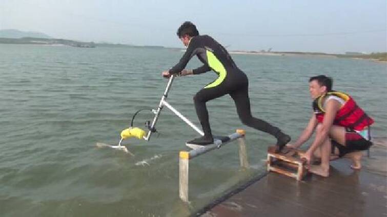 水上自行车运动起源于加拿大,惬意、安全,它的车座高度可以调节,车把是赛车型,易于操纵,脚蹬可以前后蹬,前进或是退后一切自如,如果感到疲劳,还可停住脚,在水上“悬浮”,很是悠然自得。水上自行车骑起来很轻便,时速可达到8至1l公里,但是你却大可不必为它的安全性担心,它绝不会有“翻车”的危险,而且没有严格的年龄限制,老少皆宜。水上自行车可以单人骑,也可以两人一起,两人配合驾驶,共同前进,体验团结协作的滋味。