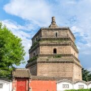 地图繁塔位于开封火车站东面,是开封市现存较古老的地上建筑,始建于北宋年间。繁塔高36米,六角形,结构独特,在三层大塔上面,还有一个六层小塔。塔身用不同的加釉灰色方砖砌成,每块砖上均雕有佛像,有释迦牟尼、文殊、普贤、观音、罗汉等。雕工精细、形象鲜明。在繁塔内各层的墙壁和登道上,还镶嵌着琳琅满目的宋代石刻题记,其中引人注目的是宋代书法家赵安仁的楷书。