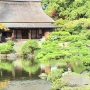 游走于水前寺成趣园内可望见绿意盎然的树木花卉,感受自在悠间的轻松心情,美轮美奂的人工山水将水前寺衬托得非常整齐美丽,庭园内的水池中涌出的是来自于阿苏山脉的伏流水。另外还有古色古香的古今传授间、小桥、池塘、高大的鸟居门等,让水前寺成为景色优美富趣味性花园,宛如汇聚了趣味性而成的庭园;于出水神社内还有甘甜清澈的泉水称为“长寿之水”,也是水前寺内的一景,由于环境优雅景色宜人,吸引许多人前来观赏,因此水前寺成趣园为日本有名的美丽景点之一。