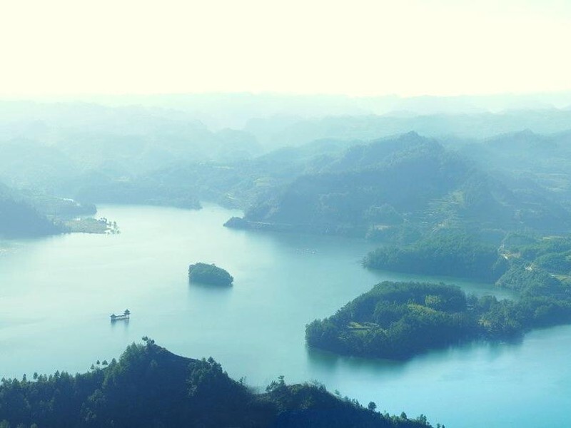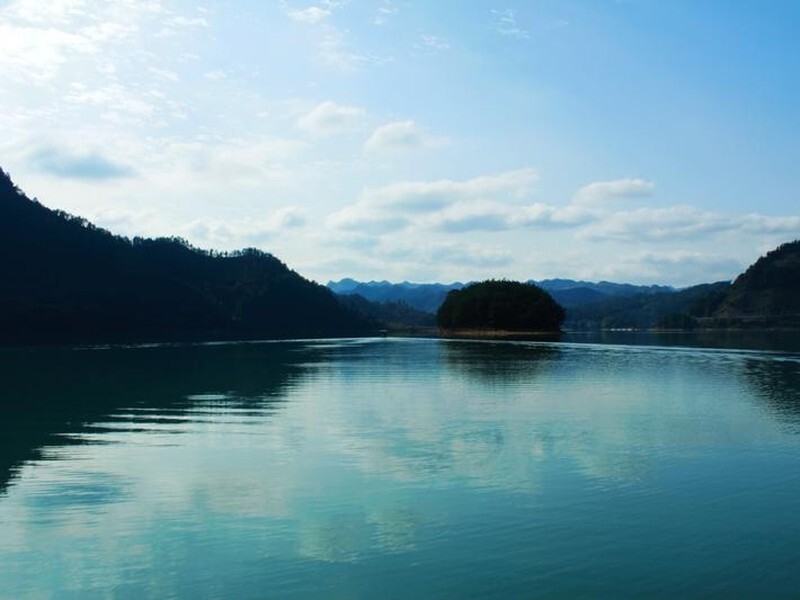 在南海三岛中,最大、最美的是牛背岛。这不仅因为它产生了许多优美如歌的民间故事、神话传说, 黔江小南海牛背岛神秘隽永,滋味绵长,更因为它恬淡自然,深藏不露。它也是一岛松风,杂花 生树,四时不绝。岛上有猴群、麝香园,还有鸡狗猪羊,茅舍竹楼。牛背岛后的倒牵溪虽不宽, 却很深,隔断了岛与陆地的联系。彼岸是龇牙咧嘴的断壁残岩,虎视眈眈地盯着这头入水的巨牛。