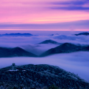 因山高雾多,云海成为百山祖的一大景观。夏日初秋,云海时如蛟龙翻滚,时如烈马狂奔,风平浪静之时,犹如姑娘害羞的脸上蒙着一层薄薄淡淡的面纱,茫茫云海,蔚为壮观,人在云上走,形似神仙游。一轮红日初升,像一团火球,与云海辉映交融,人们禁不住为大自然的神奇造化而倾倒。著名摄影家吴品禾先生获国际金奖的摄影作品“云龙出海”就摄于此。