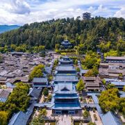 地图木府位于丽江古城南部,是历代丽江木氏土司的府邸,建筑有了明代中原建筑风格和白族、纳西族的工艺,精美壮观,徐霞客曾赞“宫室之丽,堪比帝王”。如今木府已是古城的一座标志,吸引无数游客来此欣赏。木府虽是土司王府,但宫室之瑰丽,不逊皇家,据说当年既是“仿紫禁城而建”,鼎盛时期,有宫舍100多间。沿着关门口的石板路走进去,首先映入眼帘的是“天雨流芳”木牌坊,“天雨流芳”是纳西语“读书去吧”的谐音,可见木氏土司还是很重视文化教育。转过木牌坊,右手边是一座雕工精美的石牌坊,上书“忠义”二字。当年的这座石牌坊结构宏伟雕工精湛,民间有“大理三塔寺,丽江石牌坊”的赞誉。迈进木府庄严的红色的大门,中轴线上依次排列着议事厅、万卷楼、护法殿、光碧楼、玉音楼、三清殿等建筑,,无不精美绝伦。中轴线两侧建有配殿、阁楼、过街楼、家院、官驿、长廊等共160多间屋舍,高低错落,气势磅礴,再现了当年丽江土司府的风范。议事厅端庄大气,气势恢弘,是丽江木氏土司议政之处;万卷楼,是木氏土司推崇文化的表现,据说当年内藏千卷东巴经、百卷大藏经和六公土司诗集、众多名士书画等文化瑰宝;护法殿又称后议事厅,是木土司商议家事的地方;光碧楼较早是丽江知府衙署的藏书楼,雕梁画栋,很漂亮;玉音楼是土司歌舞宴乐之处,当年接圣旨也是位于此楼;三清殿是木氏土司推崇道家精神的产物,也是纳西民族与中原文明联系紧密的见证。游览结束出来,木府大门口外的忠义牌坊、“天雨流芳”牌坊和写有徐霞客字句的照壁,是拍照留影的好地方。木府历经几百年的辉煌,大部分毁于清末的战火中,残存的部分也在1996年的丽江大地震中损毁严重,目前所见的绝大多数是1999年重建而成。虽是重建,但不妨碍其成为丽江古城内的代表性建筑。电视连续剧《木府风云》、《钱王》都是在这里拍摄的。来丽江游玩,不看木府,几乎等同于没来丽江。