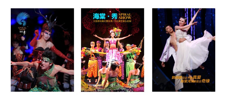 海棠秀将流传于海棠湾的古老传说改编为当代爱情故事,舞台形式上更大胆地将音乐、舞蹈、杂技等众多元素融为一体。