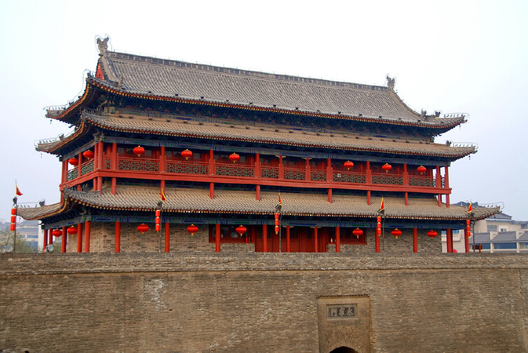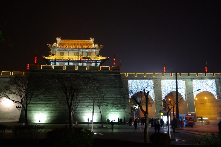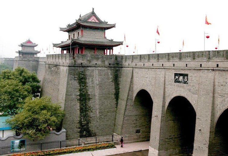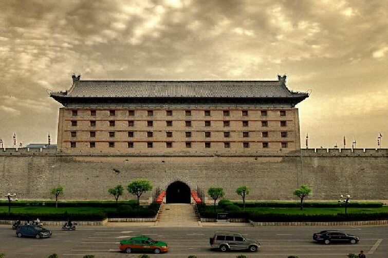 这是西安城门中资格最老、沿用时间最长的一座,建于隋初(582年)。当年它是皇城南面三座门中偏东的一座,叫安上门。唐末韩建缩建新城时留作南门。明代改名永宁门。它也是现在西安城墙各门中复原得最完整的一座,只是原设计没有箭楼。现在南来北往的车辆行人均从甫门东西两则另辟券洞内穿过,它本身已成为文物了。
