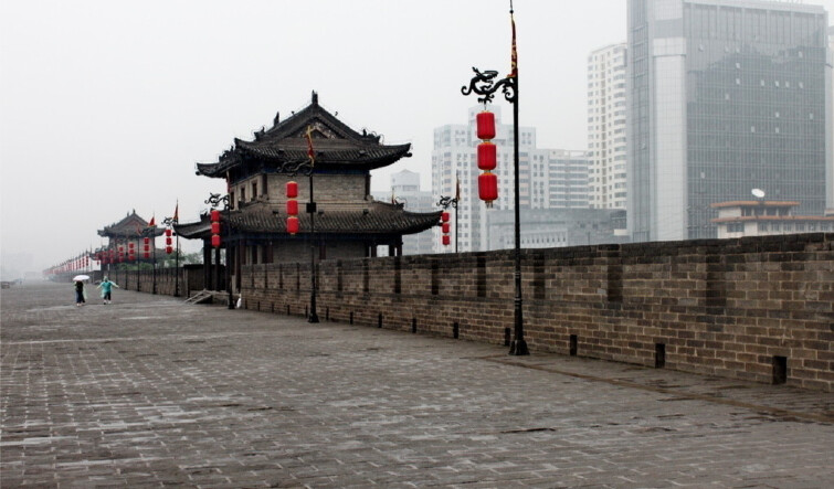 与西安火车站、大雁塔处于同一南北轴线上的和平门开通于1953年。为了表达饱经战乱的中国人民对世界和平的渴望,取名和平门。