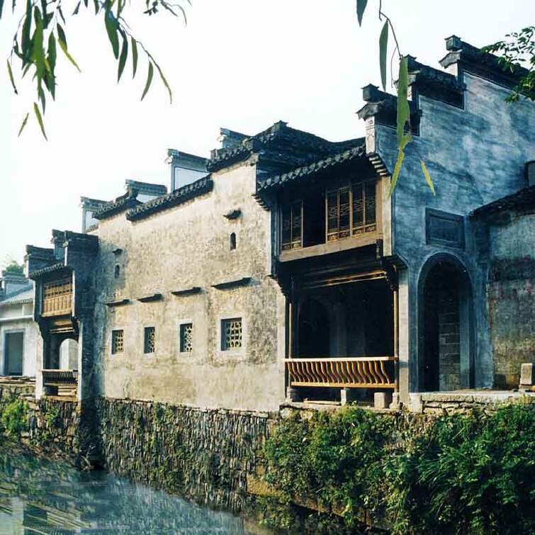 这是龙川河流经村中的地段,两岸民宅鳞次栉比,是典型的徽州古村落枕山面水的格局,胡氏族人因以两岸河堤为街,故俗称其为“水街”。“龙堤”,它衍出于河东的龙山,对面的“凤街”因脉接西面的凤凰山而得名。龙堤中间纵铺石板代表“龙脊”,两侧鹅卵石垒铺,代表“龙鳞”。对面凤街用白凤凰麻石横铺,代表凤凰的一片一片羽毛,两道街合称“龙凤呈祥”。