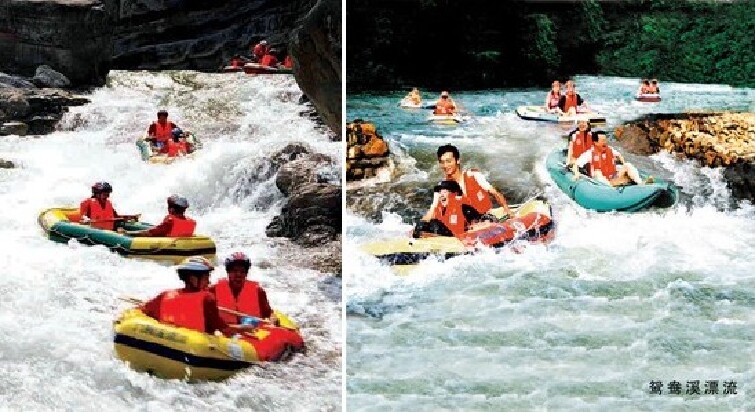 漂流冲浪惊险刺激,漂流河段全长6.55公里,山峡飞转,突而水平似镜,忽而水流湍急,稳坐船头,把稳陀向,浪遏飞舟,任凭飞珠溅玉,船随浪起,人跟船行,享有“鄂中第一漂”之美誉。现推出有飞漂、假面漂、循环漂、反复冲浪和浪漫夜漂等多种漂流形式,特别是夜漂项目为全国所有漂流景区之独有。