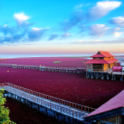小螃蟹捉起来很好玩,碱蓬草好红。