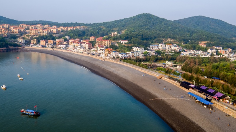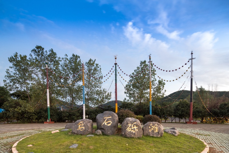 乌石砾滩位于樟州湾西岸,长500米,宽100米,高5米,这些晶莹圆润的乌石是大自然的杰作。1亿年前燕山运动时期,在海浪的作用下,海湾两侧的山体破裂剥落,大小不一的山石落入海底。乌石塘是朱家尖景区中颇具渔家特色的景点,它是一条天然垒成的石塘,塘长约500米,宽约100米,高5米。乌黑发亮的鹅卵石依坡斜垒,积滩成堤,可与南京雨花石,长江的三峡五彩石相媲美,堪称东南亚一绝。