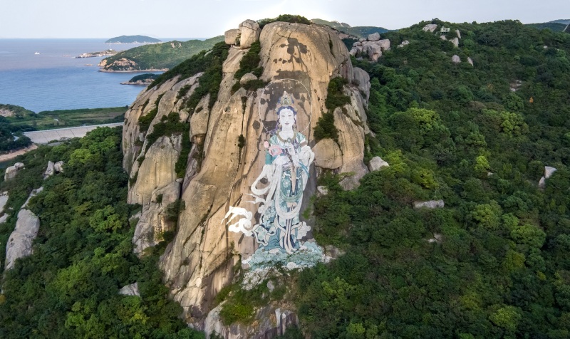 《印象普陀》选址在朱家尖原观音文化苑。朱家尖历史上为普陀山的庙宇地,是观音道场的重要组成部分。目前印象普陀剧场所在地为朱家尖风景区,其间一座高114.9米的干丈崖上彩绘的一尊观音大立像壁画高69米,面积达2000平方米。而此次演出观众就将在此亲见这个“海上莫高窟”。《印象普陀》又将是一部独特的山水实景力作。完美结合了普陀的地域特性,将场景、声光与表演融为一体。演员大多选用当地年轻人,饱满的表演情绪使得演出效果令人惊艳。