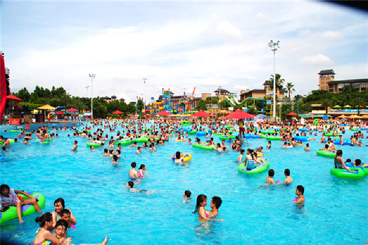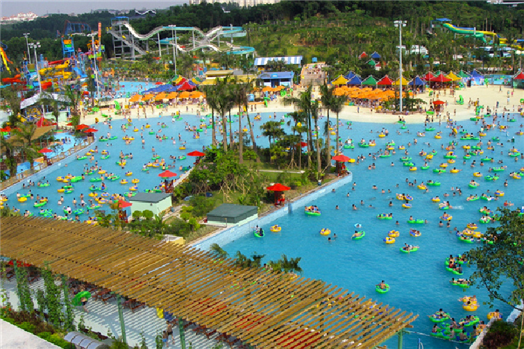 LED大屏表演舞台、沙滩区、2000平米冲浪区。