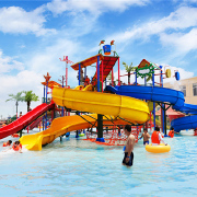 龙卷大喇叭、皮筏滑梯、变坡高速滑梯、彩虹波浪滑梯 。