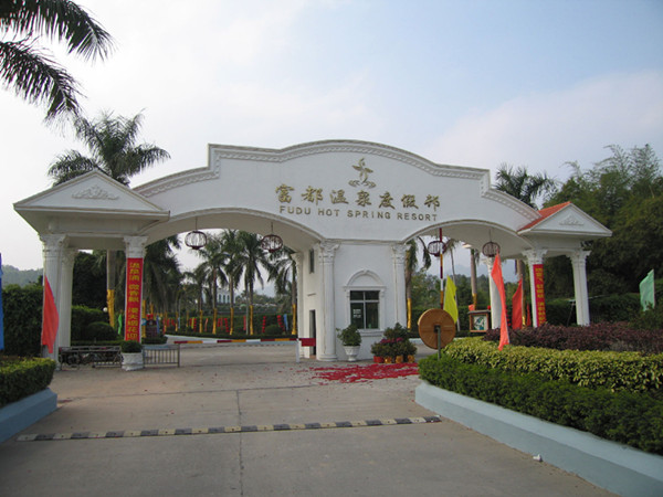 ★★★ 富都温泉度假邨位于台山市都斛镇莘村大石古山,靠近广东西部沿海高速公路旁,距离高速公路出口800米。富都温泉设有50多种特色温泉,水质富含锂、偏硅酸、氡等具有医疗价值的矿物元素,泡浴后皮肤爽滑,对肥胖、风湿炎、高血压等具有良好疗效。除飘雪温泉外,该处还拥有配方不同的十二生肖药疗温泉池,每一个生肖池都是由不同的中草药配方泡制,游客可以根据自己的体质选择不同的药疗生肖池。各式花卉温泉池是女士们的首选,有玫瑰、菊花、茉莉等十多种花卉。另外还有高温池、常温池、冰池等共一百多个。该温泉区是一个旅游度假、休闲娱乐、温泉疗养、商务会议于一体的区域性旅游度假胜地。