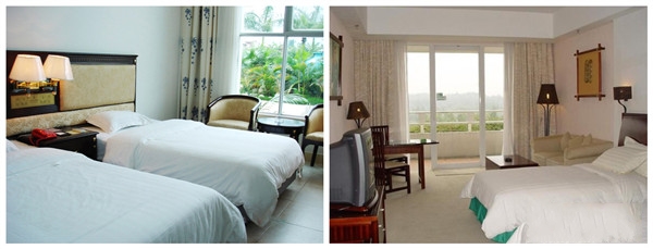 ★★ 富都温泉度假村内客房由温泉酒店、闲雅阁、碧涛阁、养生阁观景房和养生阁乡村别墅组成,共约有460间,五个区域各有各的特色,其中温泉酒店高贵典雅,是一座典型的白色欧陆式豪华建筑,白色的外墙,蒙古堡顶,高大的廊柱,处处洋溢着欧陆的贵族气息;闲雅阁装修新颖,是一座设有日式温泉客房的现在大型建筑,让你尽情体验日本人的居住氛围;碧涛阁则靠近温泉区,直接欣赏温泉区内的美景;养生阁观景房则在半山腰中,幽静典雅,是感受乡村田园环境的好居处;养生阁别墅五房一厅,是一家大小居住的理想场所。