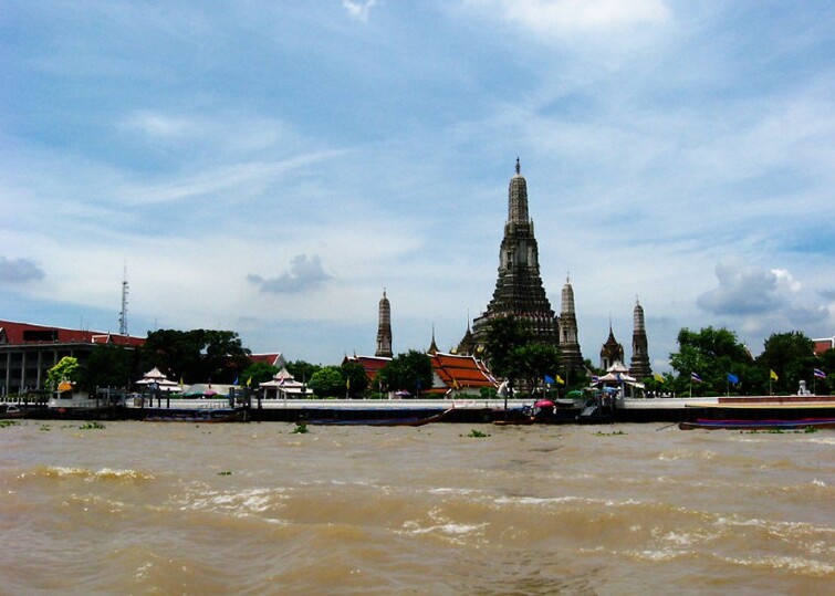湄南河就像一条彩带,给这座城市增添了不少的色彩。而这条河流的水上交通,也成为曼谷的重要枢纽,并且产生了水上市场,运河岸边并排的水上人家,满载着蔬菜和大小船只,更因而让曼谷赢得了「东方威尼斯」的封号。