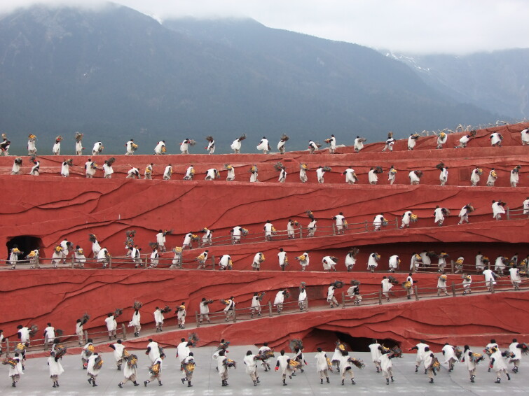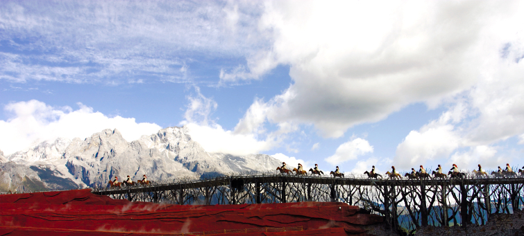 地图《印象·丽江》以雪山为背景,汲天地之灵气,取自然之大成,以民俗文化为载体,用大手笔的写意,在海拔3100米的演出场地,让生命的真实与震撼,如此贴近每一个人。《印象·丽江》大型实景演出克服了白天演出的诸多弊端,在经过近百次的修改之后,终于将白天的劣势转为优势,让每一个身临其境的观者都能无比真实地感受到一种从未体验过的情感。