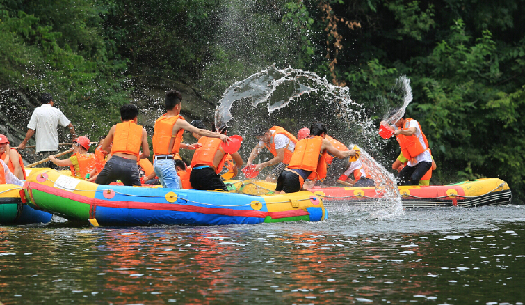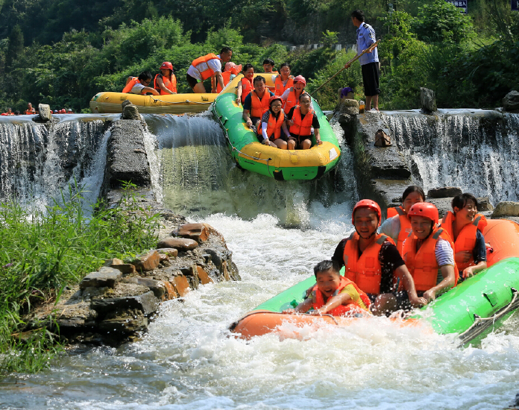 丹江口阿里山武当峡谷第一漂位于湖北十堰巍巍武当山脚下,滔滔汉水南岸,秦巴山脉中游。 武当峡谷漂流八面迎宾,地处316国道,北距汉十高速武当山风景区出口20公里,东距土关垭出口9公里,距十堰市60公里,襄樊98公里,武汉360公里,西安280公里,郑州380公里。武当峡谷漂流是目前鄂西北地区规模最大,自然河道最长,基础设施最完善,生态保护最完好的漂流。 这里地理位置优越,巍巍武当山下,滔滔汗水南岸,山水相依,峡谷峭壁耸立,怪石嶙峋,重峦叠嶂,林木蔽日,谷深涧幽,别有洞天,水聚谷间,蜿蜒曲折,时缓时急,九曲十八弯。漂流全程7.8公里,落差188米,整个漂流过程需要2.5个小时左右。沿路有多个自然景点和观景带。 景区内人文自然景有:清末庄园(二级文化遗产)、老杨屋、桂花场、八丈崖洞、碧玉潭、清凉谷、半月潭、珍珠瀑布、隔水飞岩、百步梯、棋盘山观日出、阿里山文化风情园、画眉谷野战营等是鄂西北地区规模最大,自然河道最长,配套设施最完善、生态环境最完整的自然峡谷漂流。