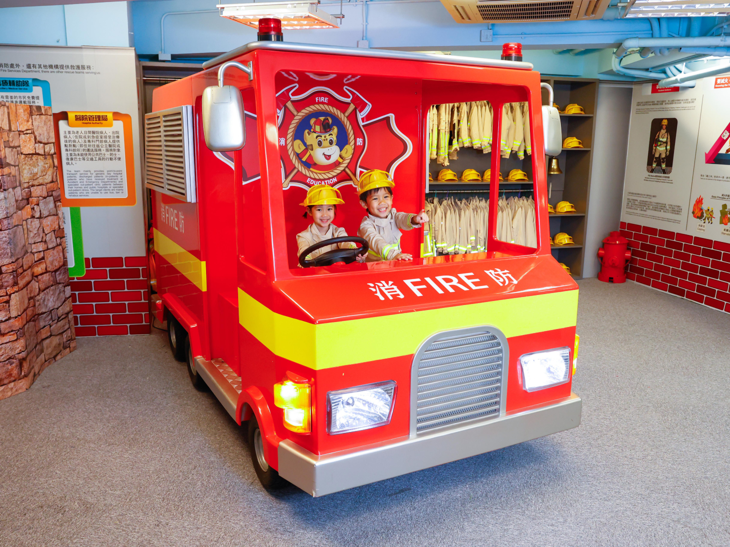 小朋友变身成智勇双全的消防员,勇闯模拟火场,将受困人士由重重烟雾里救出,并扑灭火种。透过第一身演习让小朋友汲取防火知识,同时训练他们的应变能力,锻炼出临危不乱的冷静思维。