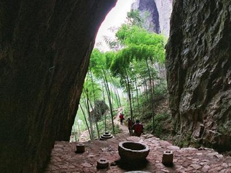 进入寿仙谷,满目岩泉潺潺,碧竹茵茵,犹如置身幽美宁静的世外桃源,这里,断崖绝壁雄险,怪峰异石奇秀,石相依,竹相亲,真如郑板桥先生所画的十里长廊竹石图。 最为迷人的是九天瀑布,落差120米,上瀑如烟似雾,下瀑如珠似雨,一天白练蜿蜒于绿谷之中,令游人痴醉。景区内,可观“天下第一酒坛--醉仙岩,”可赏“天下第一天然大寿”--绝壁天书,可攀“华东第一悬梯”--天梯,可尝老寿星的赠品--赐珠园仙珠……去寿仙谷,做一回仙人。
