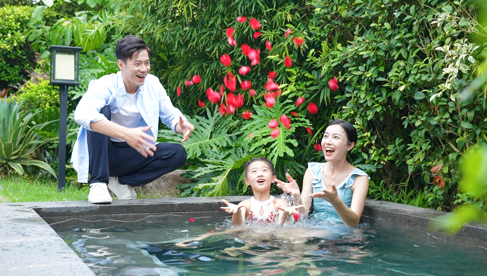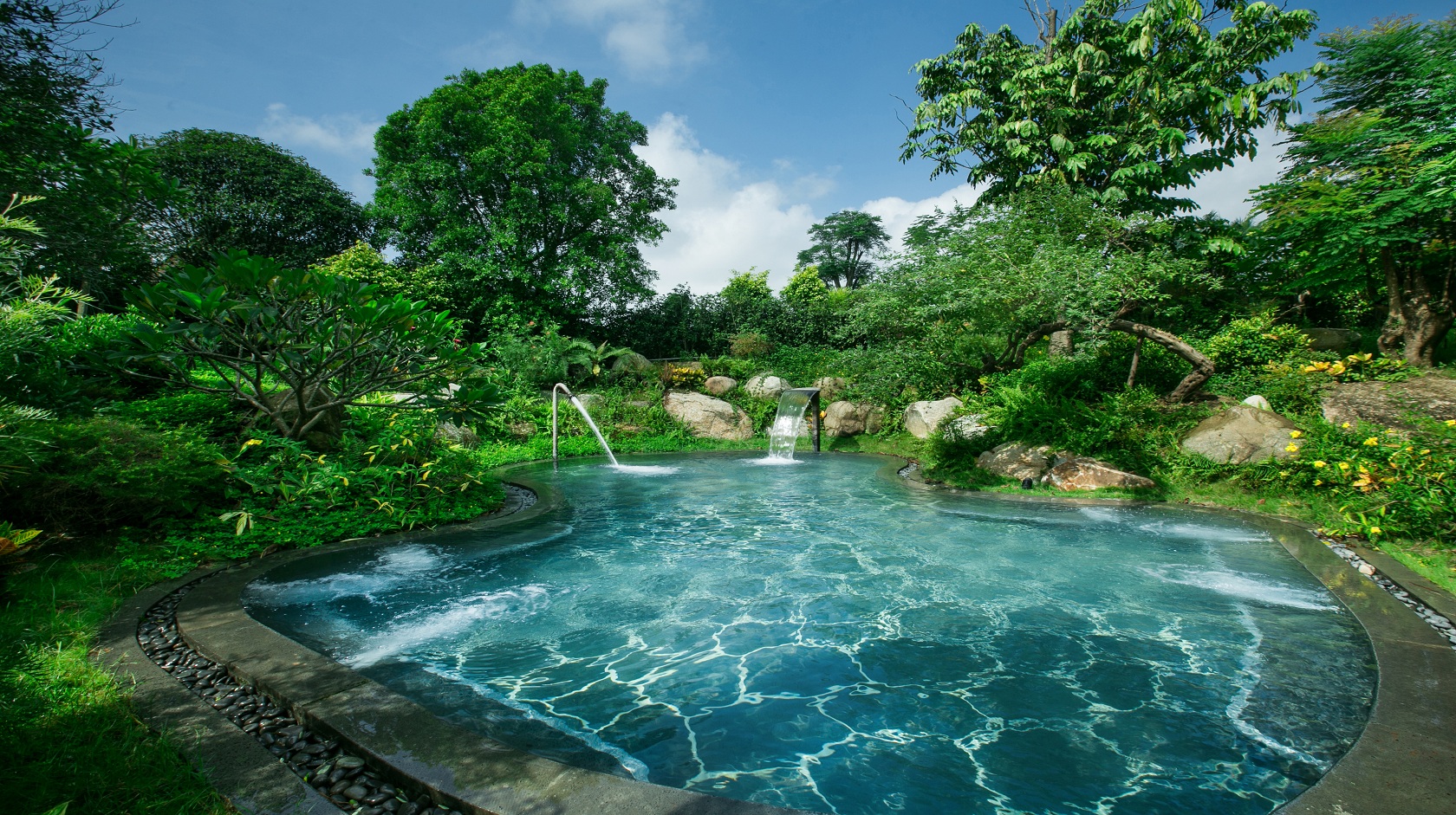 温泉区设有无边际游泳池、动感水疗SPA池、长生池、沉鱼池、落雁池及百草园中药池等。