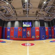 该乐园以NBA为主题,面积约1000多平方米,以红蓝色为主色调,乐园包括九大核心游玩元素的梦幻乐园。