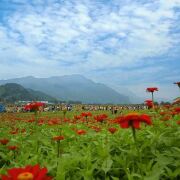 其中全年种植花卉有郁金香、花毛茛、白晶菊、三色堇、金鱼草、毛地黄、日光菊、耧斗菜、矢车菊、剪秋萝、鼠尾草、福寿花、堆心菊、婆婆纳、马鞭草、百日草、向日葵、冰岛虞美人、矮生硫华菊、天人菊、金盏菊、蛇目菊、翠菊、松果菊等30余个品种。各种花卉次第开放,花开成海与左右青山湔江河谷相互衬托,向游客们展现了一幅极具风韵的山水画卷。