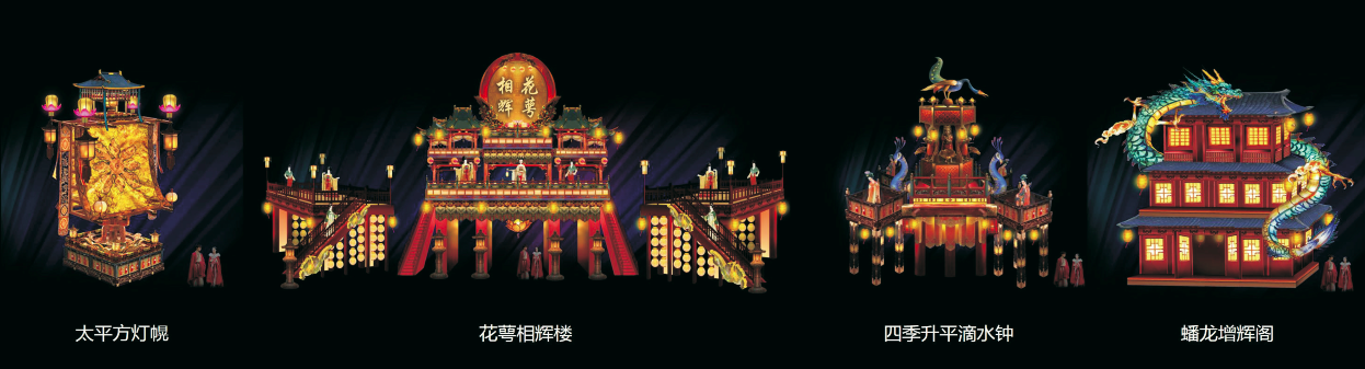 汇聚、展现全国各地所具代表的流派花灯,营造各流派街景,在观赏的同时也能了解到全国各地花灯的特色文化,感受各地的花灯文化魅力