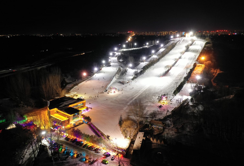 紫云山滑雪场夜场经过全新升级,为滑雪爱好者们带来了一场视觉与滑雪体验的双重盛宴。夜场亮化工程的实施,使得雪道在夜晚也能如白昼般明亮,为滑雪者提供了更优的视野条件。
