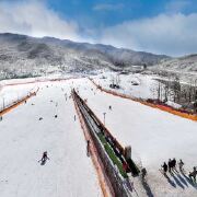 地图七星山滑雪场是高山户外自由式滑雪场。该滑雪场不仅是一处集各种滑雪比赛、训练和大众娱乐为一体的多功能滑雪场,还是游人滑雪、戏雪、赏雪的乐园。周边环境优美,游客可以在享受滑雪乐趣的同时,欣赏到壮丽的雪山风光。此外,滑雪场还举办各种冰雪活动,如冰雕展、冰上演艺等,为游客提供丰富多彩的冬季旅游体验。