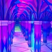 展馆以梵高画作为灵感基底,运用镜面反射、全息投影等技术构建出多维艺术场景。星空主题区采用光纤幕墙与动态感应装置,随着脚步移动会触发流萤般的星光轨迹;向日葵展厅通过环绕式镜屋设计,营造出无限延伸的视觉幻境。特别设计的《星月夜》互动墙,允许观众用手势改变画面笔触走向,体验数字时代的"共同创作"。