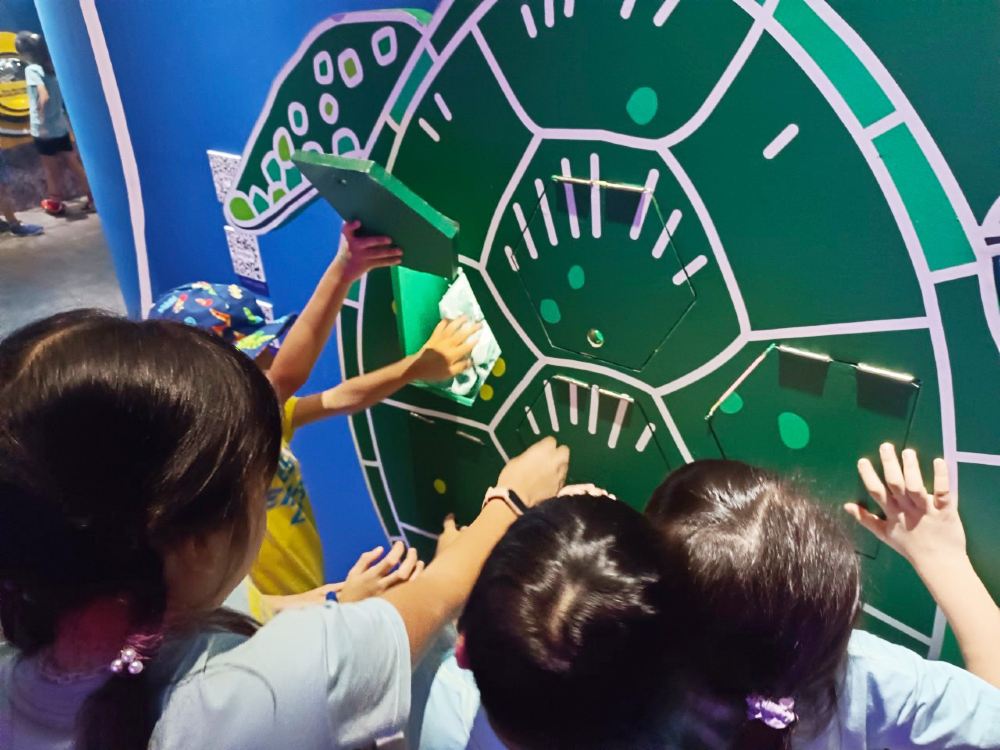 超大的钓鱼机,直径长达 7 公尺!馆内受欢迎的交互体验之一,大小朋友都能玩得尽兴。
