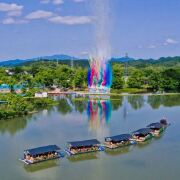 浏河第一湾夜游《梦幻浏阳河》实景演出以浏阳河为主线,将多个浏阳河水上流动舞台打造成一个如梦如幻的实景舞台,演出刷新了“声、光、影、河、焰”的全景情境式表演模式:一湾荡漾的水域、长长的河岸线灯光,3D投影,都成为了《梦幻浏阳河》舞台的组成部分,灯影、水影、船影、火影、人影,整个演出现场交相辉映成一道美丽的浏阳印象。