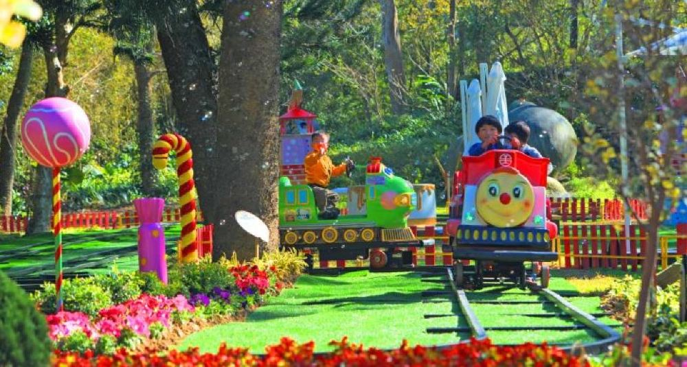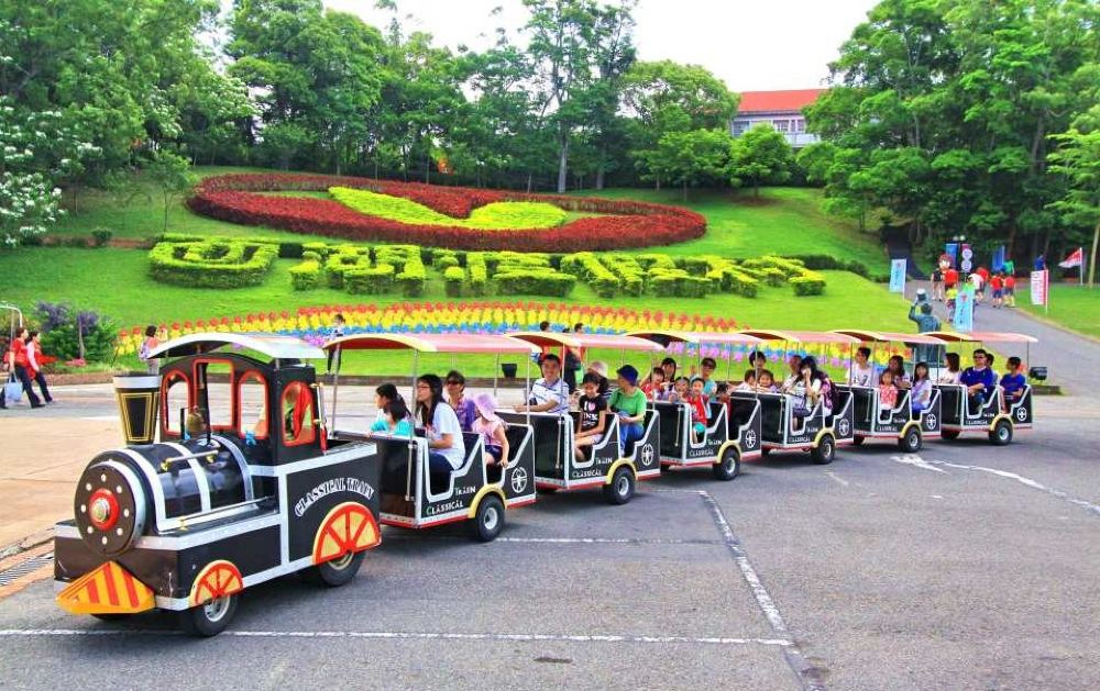 在凡尔赛花园,搭乘花园小火车游赏花园别有一番乐趣!