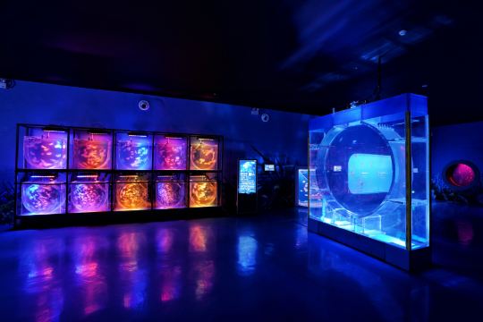 水母是一种非常漂亮的腔肠动物,晶莹剔透 轻盈飘逸,在水母馆育养室,您还可以了解到水母的繁育过程。