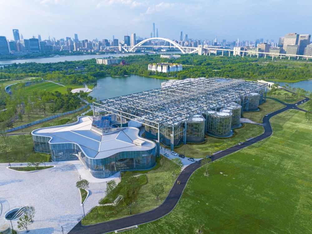 上海温室花园位于世博文化公园中心位置,紧邻中心湖,背靠双子山,占地约 2.2 万平方米,地上地下总建筑面积约 4 万平方米,是集观赏游览、休闲娱乐为一体的多功能生态综合体。外形设计通过对原上钢三厂老厂房的改造利用,把历史记忆和现代元素结合在一起,形成自然优雅的云状曲线。上海温室花园由四个场馆组成,包括1 个游客服务中心和 3 个主题场馆(分别是 1 号馆海市沙洲、2 号馆云上森林和 3 号馆云雾峡
