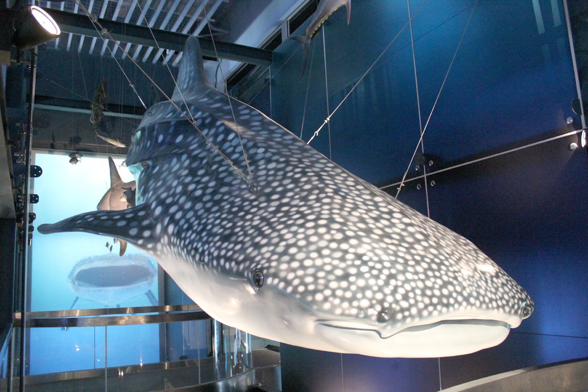 超大的鲸鲨与其他太平洋鱼类悠游于海洋造景中,给你满满的震撼!