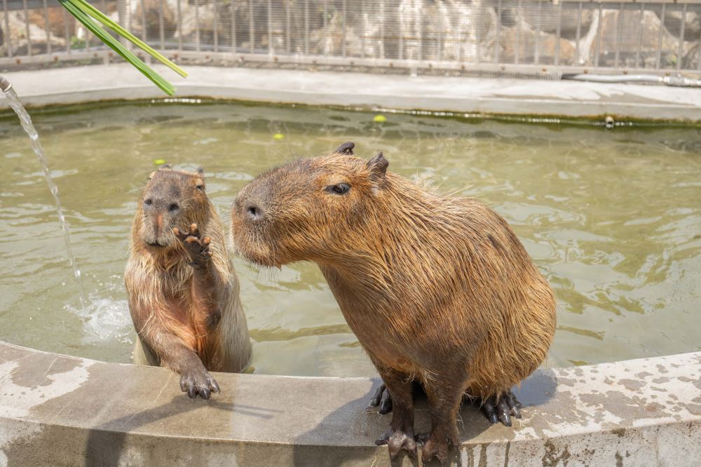 来自南美洲的水豚,性格温驯和善,圆滚滚的外表加上呆萌表情,为近年来备受瞩目的明星萌宠之一!看水豚君慵懒瞇眼泡澡,感受近距离与动物交互的乐趣体验。